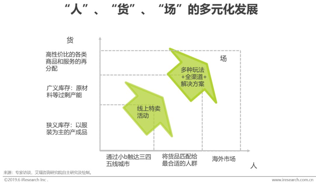 未来走向多元化:为了不受限于这三类因素,未来的发展模式可能会围绕着“人”、“货”、“场”向多元化发展。比如,从“通过社交营销,帮助品牌商清库存”到“寻找最合适的渠道和目标人群,为企业提供库存解决方案”。但是目前来看,各家平台刚刚起步,有待第一阶段的市场完全开发出来,再去考虑未来漫长的探索过程。