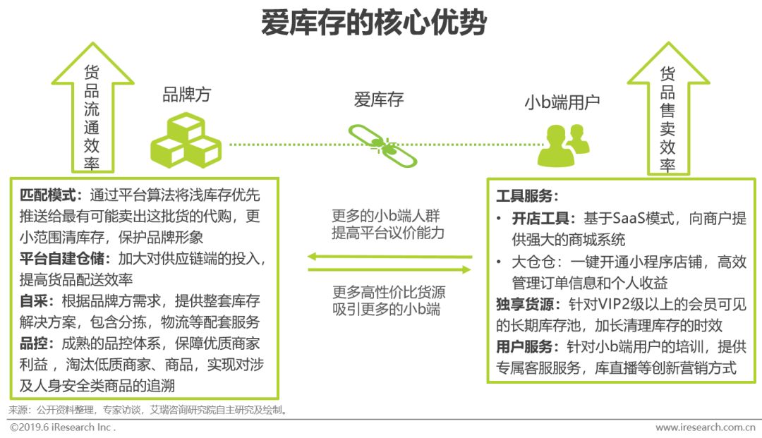 爱库存创立于2017年9月,是国内第一家S2b2C类库存电商平台。爱库存上游打通品牌方库存,下游服务分销商,借助社交电商的爆发力,带动分销商的能动性进行销货。平台创立后销售额呈指数增长,2018年12月GMV已超过6亿。由于有线下特卖的背景,平台更加理解上下游两端的痛点, 不断深化平台的服务,致力于提高整体产业链的效率,为品牌方和小b端人群提供更全面的解决方案。