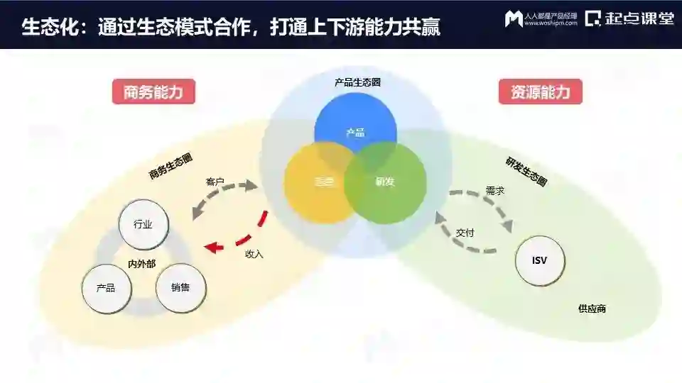 这样既有了商务资源,又有了研发生态,在整个生态化建设的过程当中,不只有产品自己的生态,还要有上下游的打通,产品的外延和价值才会发挥地更好。
