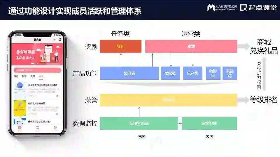 产品运营的核心是从工具出发,积累内容,不断地让用户认知你的产品,提供更多的服务给这些用户。出卷人和答卷人也是可以互相转化的,当答卷人有需求的时候,他又会作为一个出卷人。所以通过产品模式和链条的优化,可以让你的用户循环地流动起来。