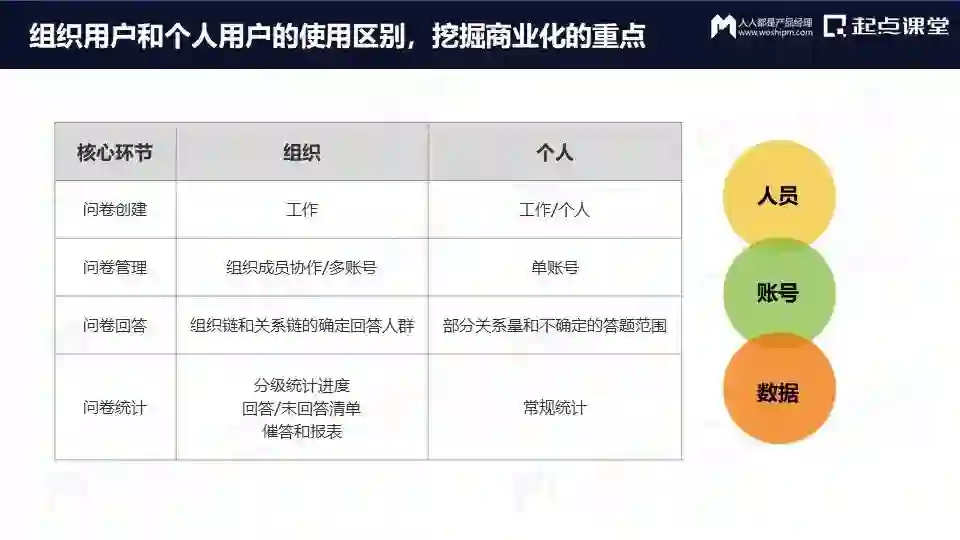 在运营的过程中,需要不断挖掘产品的业务模式,思考产品主要能力链条是不是可以延展,这里当问卷把组织链拓展了之后,产品使用的范围、方式又会发生变化。