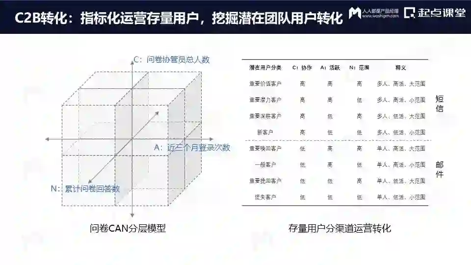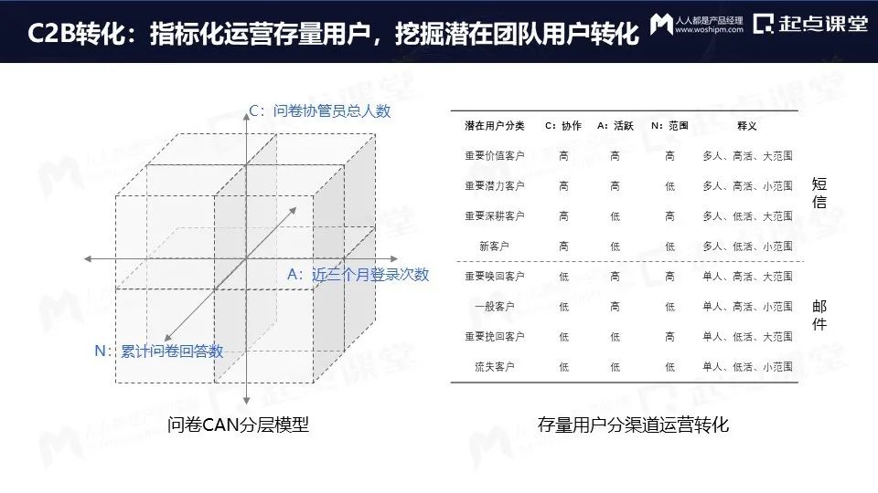 在免费阶段或者是To C的环节,积累了很多的存量用户,当产品有付费功能之后,挖掘有潜在需求的用户进行转化,也是一个很重要的工作。