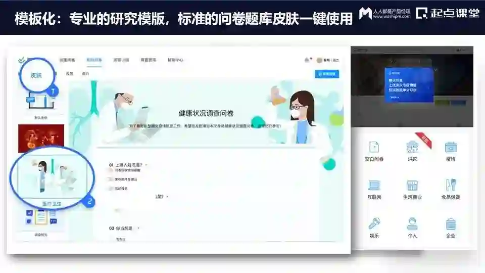 第一个是热点事件。把数据调查的场景和常见的热点结合起来,比如猜谜、开学季,这些都是跟问卷产品相关的。
