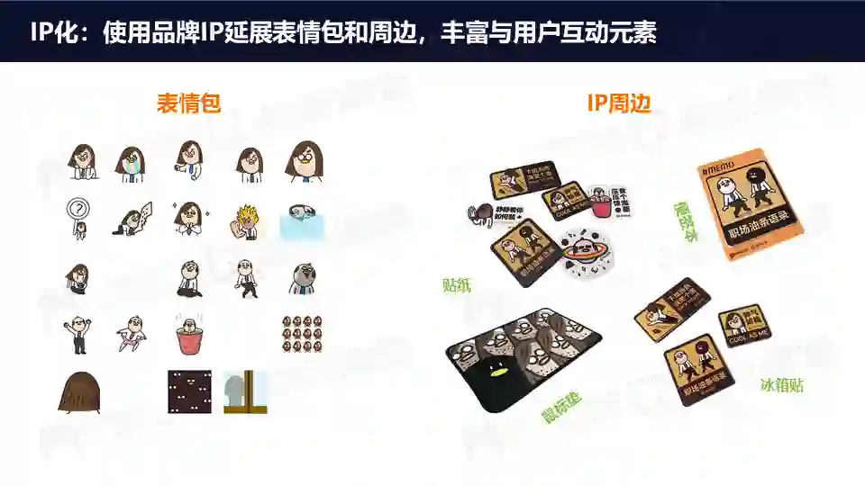 有了IP之后,就可以做表情包、周边等,丰富与用户的互动元素。