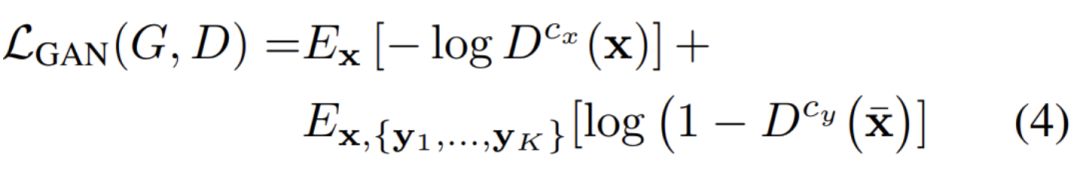 如上在 GAN 的损失函数中,D 的上标表示不同的目标类别。整个损失函数仅使用对应类别的二元预测分进行计算。