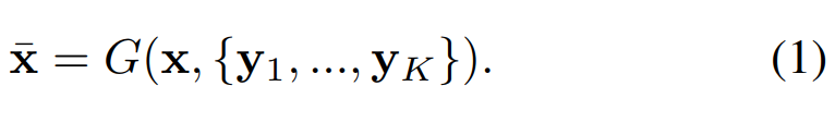 研究者假设内容图像属于对象类 c_x,而每一个 K 类图像属于对象类 c_y。一般来说,K 值很小,对象类 c_x 区别于 c_y。他们将 G 称为 few-shot 图像转换器。