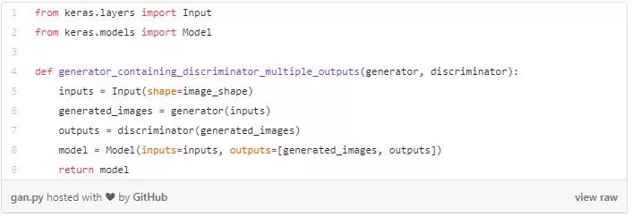 最后一步就是建立完整的模型。这个GAN的一个特点就是输入的是真实图片而不是噪声 。因此我们就有了一个对生成器输出的直接反馈。