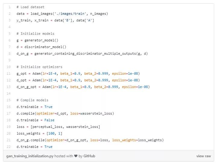 第一步是加载数据并初始化模型。我们使用自定义函数加载数据集,然后对模型使用 Adam 优化器。我们设置 Keras 可训练选项来防止判别器进行训练。