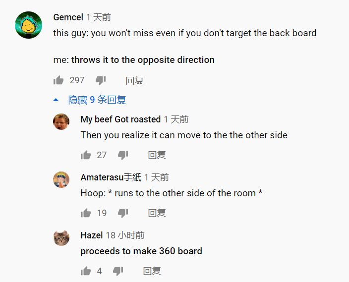 第三版的「百发百中」篮板出来之后,依然有人出来「唱反调」:「我往相反的方向扔你就接不到了吧。」
