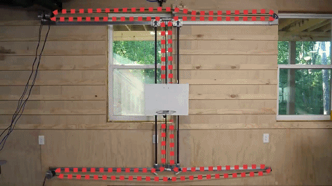在经历了皮带脱轨等事故后,Wighton 的篮板基本可以自由滑动了。但墙上的 3D 体感相机还需要优化一下,因为它还不知道哪个方向是上、篮板的角度如何、墙和篮板的位置在哪儿。没有这些数据的话,篮板就无法精确移动。