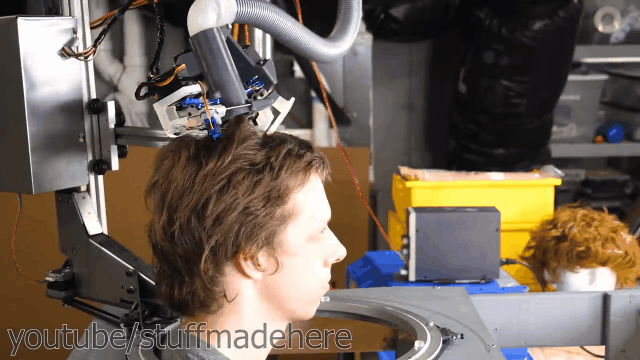 Wighton 于 2020 年 3 月开通了自己的 YouTube 频道,短短半年已经收获了 84 万 + 订阅者。除了我们介绍的三个篮板视频外,Shane Wighton 还发明过一个「剪发机器人」(详情请戳:我脑洞大开,让机器人来给我剪头发 )