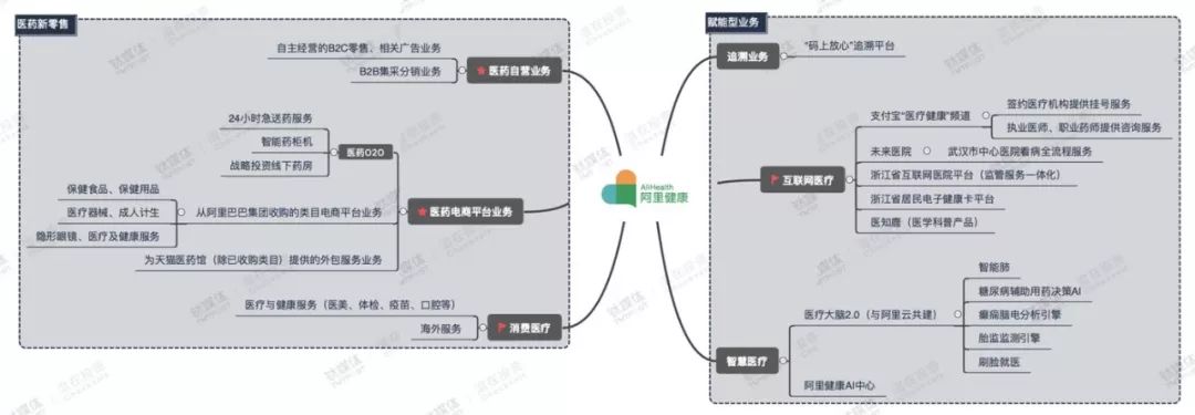 阿里健康通过多次收购,逐步完善了在大健康领域的布局。