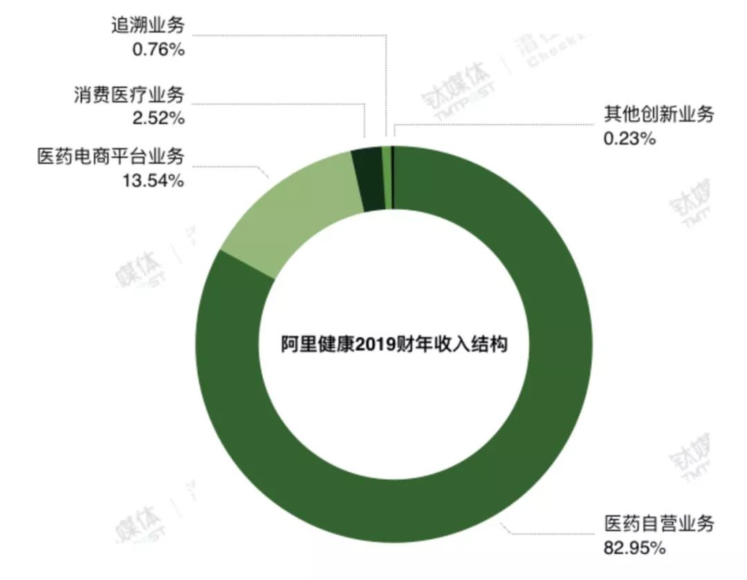 阿里健康2019财年收入结构,数据来源:阿里健康2019财报(制图/钛媒体App)
