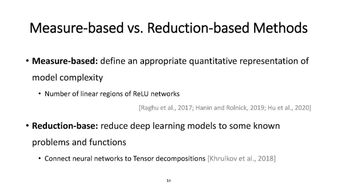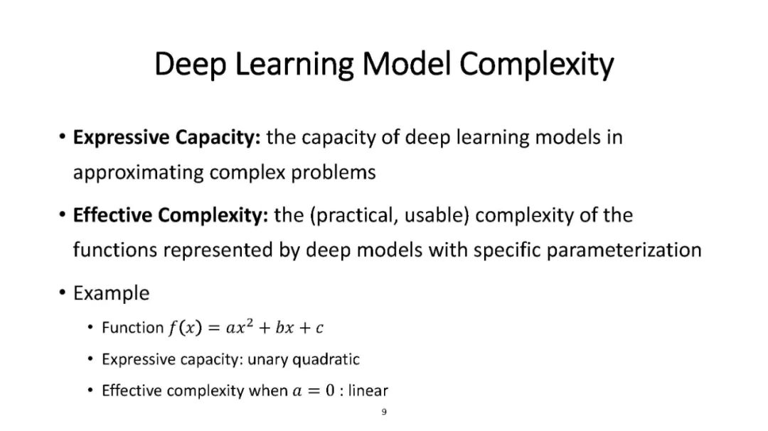 主要由于其优越的性能,深度学习在许多应用中具有破坏性,如计算机视觉[40]、自然语言处理[55]和计算金融[91]。然而,与此同时,关于深度学习模型的一系列基本问题仍然存在,如为什么深度学习的表达能力比经典机器学习模型有很大提高,如何理解和量化深度模型的泛化能力,如何理解和改进优化过程等。深度学习的模型复杂性是一个核心问题,与许多基础性问题有关。
