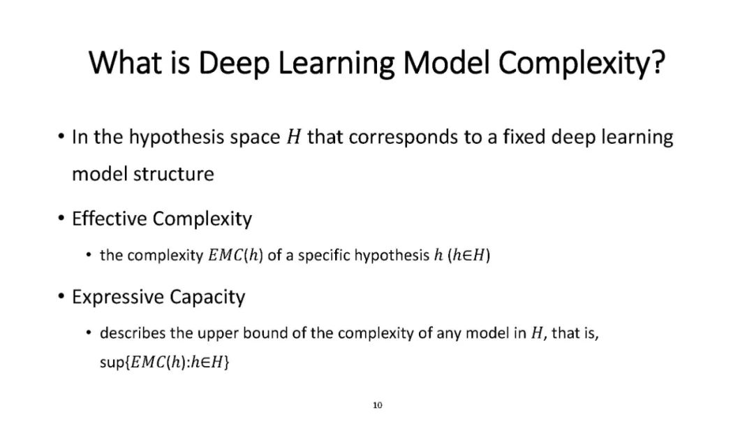 我们提出这个教程来概述关于深度学习模型复杂性的最新研究。本文将模型复杂性研究分为模型表达能力和有效模型复杂性两个方向,并对这两个方向的最新进展进行了综述。此外,我们还介绍了深度学习模型复杂性的一些应用实例,以说明其实用性。