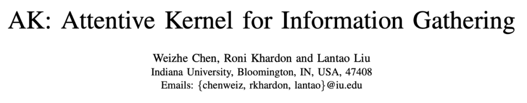 获得最佳学生论文奖的是《AK: Attentive Kernel for Information Gathering》。在这篇论文中,作者提出了一种新的非平稳核,称为 Attentive Kernel (AK) ,它简单、鲁棒,可以把任何已有的核扩展成非平稳核。