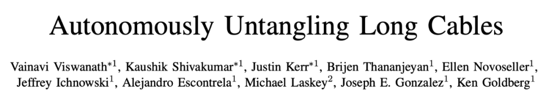 获得最佳系统论文奖的研究是《Autonomously Untangling Long Cables》,在这篇论文中,作者主要研究了使用双侧机器人自主解开长达 3 米的电缆。