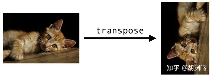 图像的转置与矩阵的转置类似,就是把图像 和 位置的像素交换位置 (transpose):