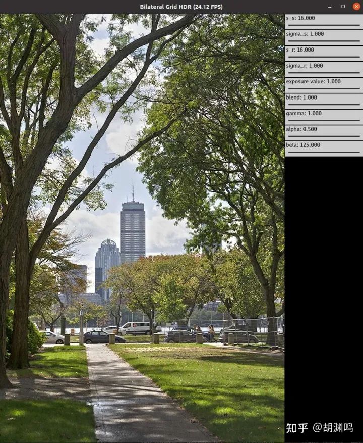 运行 Bilateral Grid tone mapping 以后,结果终于舒服了,能同时看到高光和阴影处的结果。