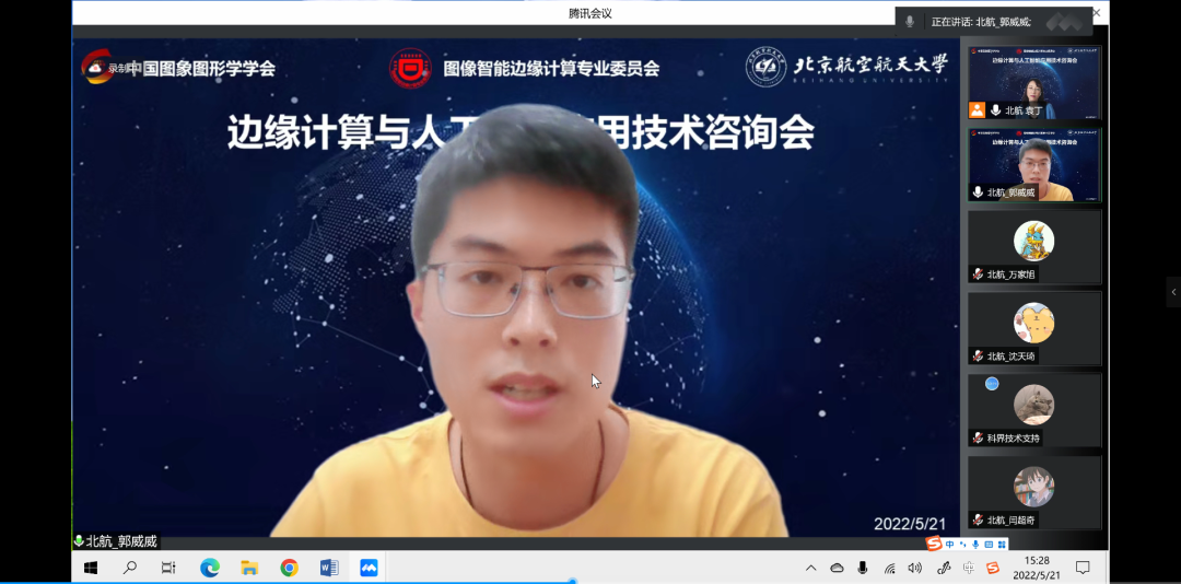 2022年5月21日下午,CSIG图像智能边缘计算专委会在中国图象图形学学会的支持下,举办了一场精彩的边缘计算与人工智能应用技术线上咨询讲座。为了激发研究生、本科生以及中学生探索信息科技前沿的兴趣,树立学生不断探索创新的理想,扩大中国图象图形学学会影响力,专委会邀请了专委会委员主任张弘教授以及袁丁副教授,杨一帆副教授,李旭亮博士后,闫超奇博士,万家旭博士等相关成员作为演讲嘉宾与大家分享边缘计算与人工智能技术发展历程、研究趋势及开展线上答疑。