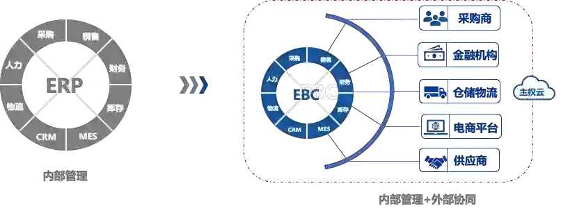 这两者的主要区别是,ERP管理系统侧重资源、计划等企业内部的资源管理,而EBC系统则更强调数据驱动,从客户角度出发,赋予其协同作业、主权云部署、IOT互联等外部业务拓展能力。