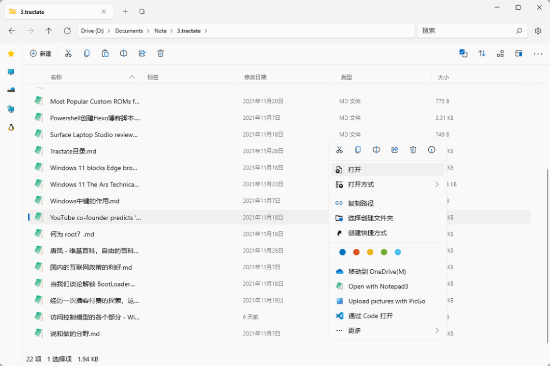新的右键菜单引发了两种抱怨:一种是它让「用 VScode 打开」等操作更加麻烦,因为现在用户需要点击两次;另一种抱怨是微软并没有真正废除旧的右键菜单,在应用调出的文件选择窗口,右键菜单仍然是 Windows 10 的样子。