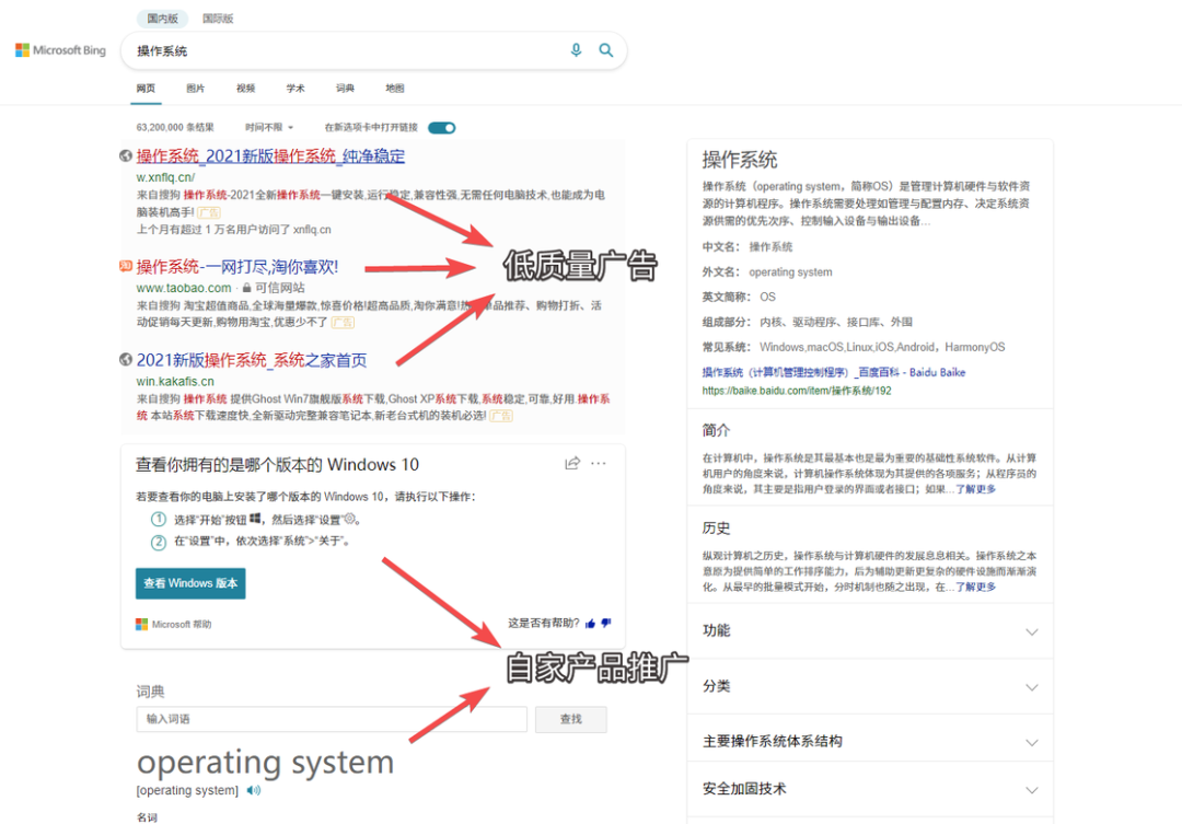 作为一个搜索引擎,Bing 在中文搜索结果的准确性上是不合格的,它更像是微软推广自家产品,投放广告,收集用户数据的平台。更让人不能接受的是,很多情况下 Bing 是开始菜单失去响应、白屏等问题的罪魁祸首。