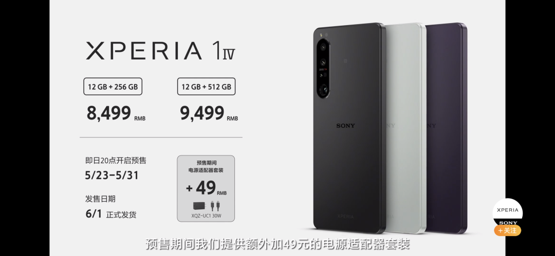 索尼 Xperia 1 IV 国行售价 8499 元起