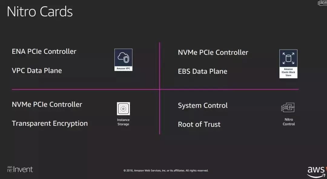 NitroCards:专有硬件承载存储、网络功能,以及控制EC2实例的业务逻辑;