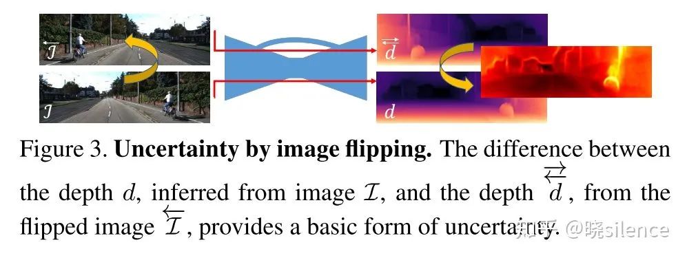 这种方法是利用图像翻转来进行不确定度的估计的,训练的时候只训练一个模型,在测试的时候会得到两个深度图像 以及