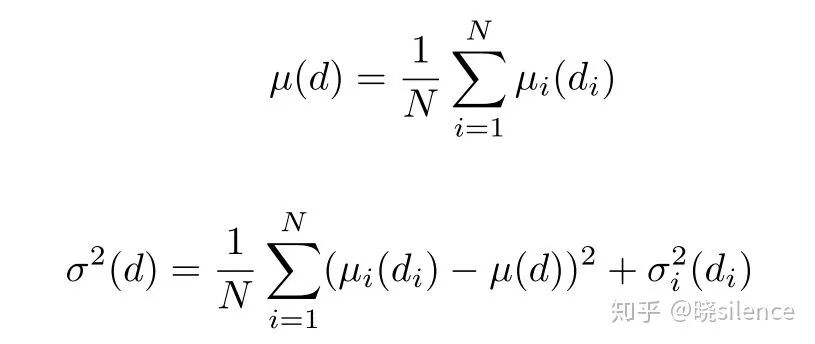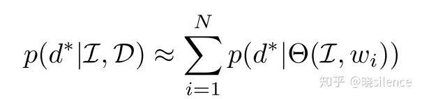 再Bayesian深度学习框架中,模型的不确定性可以解释为边缘化所有可能的 而不是进行单点估计。通过对N个模型的采样,可以将均值方差建模为: