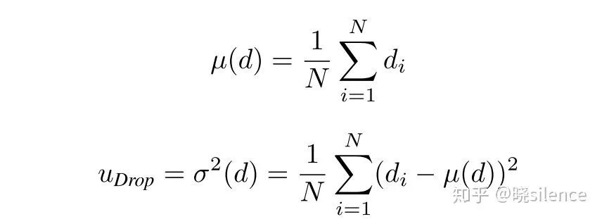这种好处就是,对原始的网络不用经过任何的修改,只需要在进行inference的时候进行两次forward就行了,这种方法得到的就是小样本上的方差。