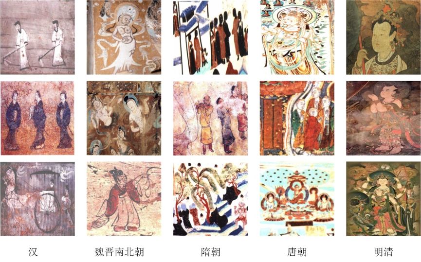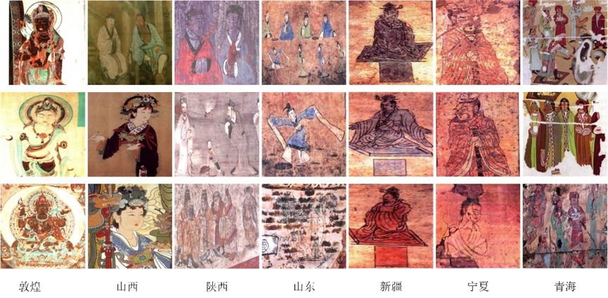 论文所有数据均来自《中国敦煌壁画全集》和《中国丝绸之路的墓室壁画》画册的扫描版,时间上从汉代沿革到清代,地域上跨越了东部、中部和西部,涵盖了不同朝代不同地区的壁画题材。