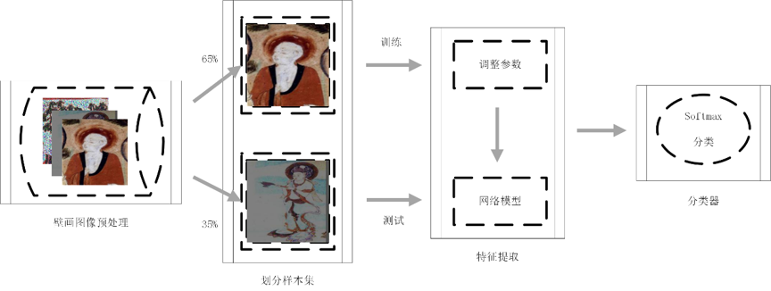 对壁画图像进行分类研究,方便研究者快速有效地从数字壁画库中搜索目标图像,以便对壁画图像进行有序管理和保护。传统特征的提取方法有一定的效果,但需要丰富的先验知识,同时提取到的特征会存在表达不充分和泛化能力不强的问题。