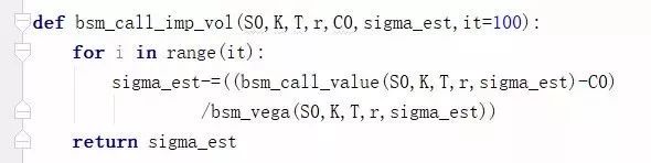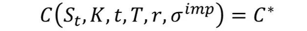 现在假设某项欧式看涨期权的报价C*已经给定,那么隐含波动率σ^imp是可以求解上述公式的波动率数值,即: