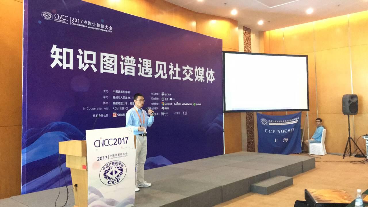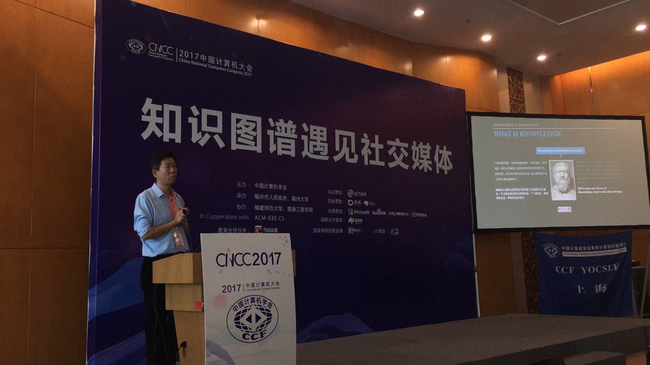 10月26日下午,由CCF YOCSEF上海和CCF中文信息技术专委会联合主办的“知识图谱遇见社交媒体技术”论坛如期举行,论坛执行主席为CCF YOCSEF上海主席、深圳狗尾草智能科技公司CTO王昊奋博士和CCF YOCSEF总部学术秘书、中国科学院信息工程研究所网络空间技术实验室主任助理林俊宇博士共同主持。本次活动邀请到了国内知识工程和社交媒体领域的顶级专家、学者和企业家共六位讲者共聚一堂。本次论坛吸引了超过300名听众,CCF广州分部主席臧根林、CCF YOCSEF总部荣誉委员胡春民、荣誉委员姜波、荣誉委员卢东昕、AC委员董笑菊,上海分论坛学术秘书李超、卢暾,AC委员高博、陈铭松等应邀参加了活动。