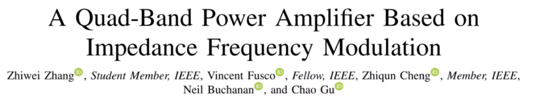 2021年,张志维和来自英国贝尔法斯特女王大学的Vincent Fusco等人在IEEE Transactions on Circuits and Systems II上发表了阻抗频率调制的研究成果论文。