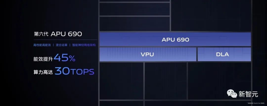 天玑9200旗舰平台的第六代APU690算力高达30TOPS,能效比相较上代提升了45%。