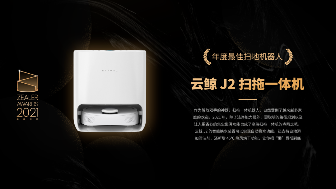 作为解放双手的神器,扫拖一体机器人,自然受到了越来越多家庭的欢迎。2021 年,除了洁净能力强外,更聪明的路径规划以及让人更省心的集尘集污功能也成了高端扫拖一体机的点睛之笔。云鲸 J2 的智能换水装置可以实现自动换水功能,还支持自动添加清洁剂,还新增 45℃ 热风烘干功能,让你把“懒”贯彻到底。