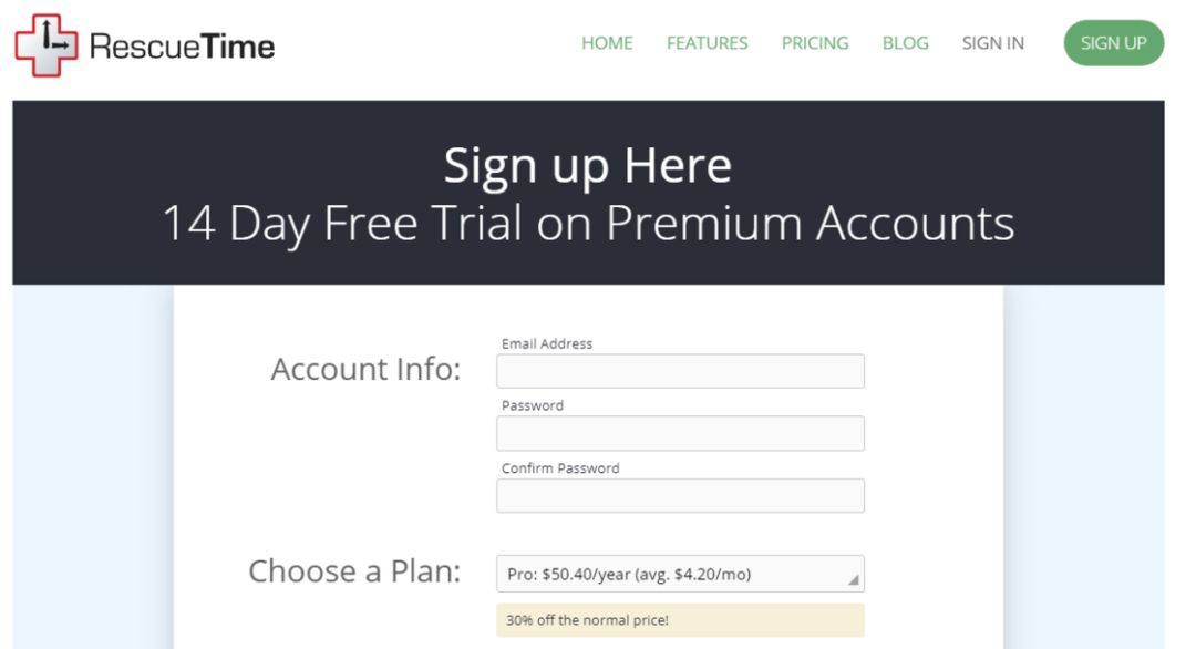 RescueTime 的的订阅价为 9 美元/月或者 72 美元/年,相对昂贵。SaneBox 为我们提供了 7 折优惠,无论是月付还是年付,都可以享受优惠。你可以在领取页面创建账户并享用折扣。
