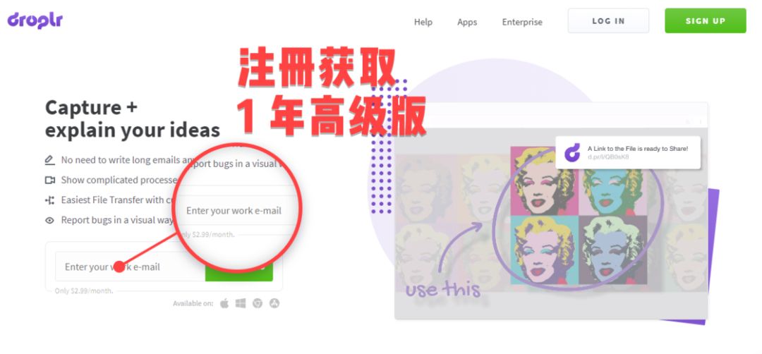 Droplr 是一款老牌文件分享工具,我们可以通过它来快速分享文件、甚至是文字。在微信、QQ 传输文件都具有诸多限制时,Droplr 无疑是一个快速分享文件的好选择。