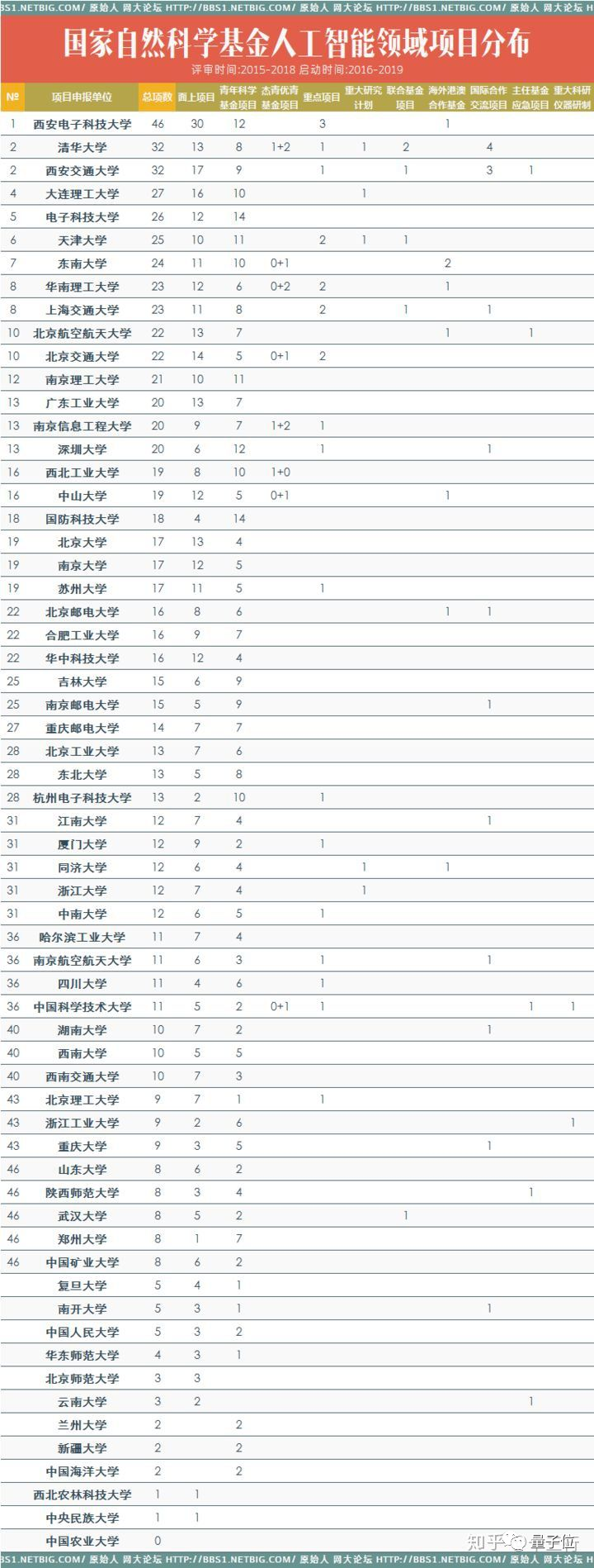 又例如,根据知乎@newwinds引用的网大论坛原始人资料,在人工智能领域,南京信息工程大学申报了20项国家自然科学基金项目,面上9项,其中1项是重点项目。
