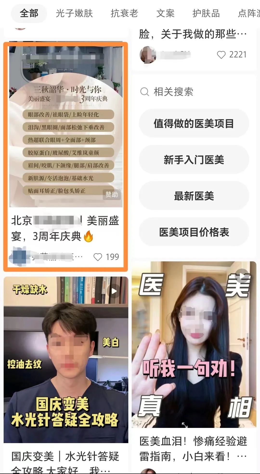 此外,拼多多推出了低价光子嫩肤团购,阿里有了医美直播产品示范中心,字节上线了“小荷医美”,再加上小红书在医美广告业务上的发力,现有的医美行业格局,面临着随时被流量、资本冲击的可能性。