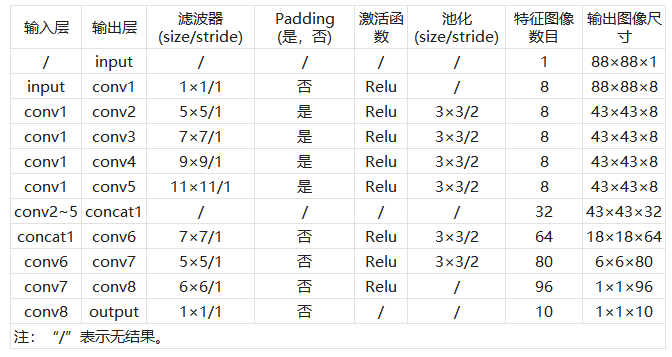 由于Dropout是提高深度模型泛化能力的有效手段之一,故在卷积层conv8和输出层output间加入Dropout操作防止过拟合情况,Dropout Rate设定为0.1。