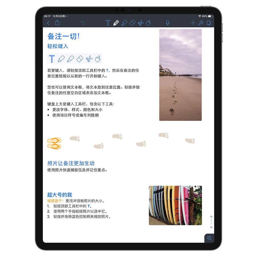 软件画面很简单,左侧是笔记和备注的分类,右侧是笔记和备注的详细内容。这里要提醒一点,想要完全发挥 Notability 的实力,请一定配上一根 Apple pencil。不夸张地说,没有 Apple pencil 的 Notability 没有灵魂。我们可以用 Apple pencil 搭配 Notability 在各种资料上做笔记,你可以插入图片、插入 PDF、插入 PPT,你可以在上面标注文字或者涂鸦,使用相机现场拍摄插入照片作为展示,让你的笔记从此生动起来,也更有利于我们去思考和记忆。