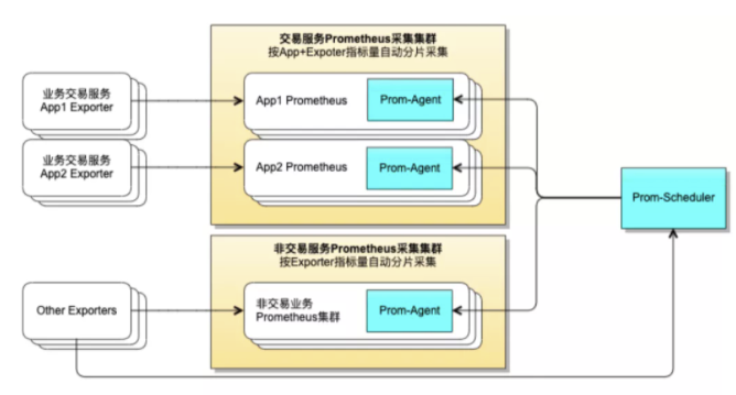 应对方法是建设独立的 Prometheus 采集分片管理服务,Prom-Scheduler 与 Prom-Agent 服务:
