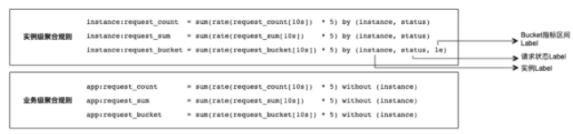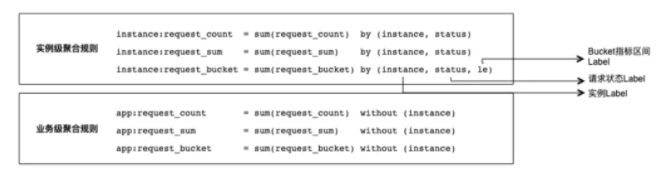 在做降维计算时,我们一开始想到了使用 sum 聚合函数。则根据之前所讲的聚合思路,分别聚合到实例级和业务级,可以写出如下的聚合规则: