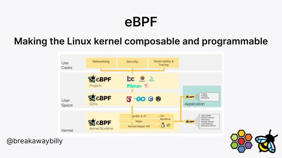 eBPF 是一种可以安全地扩展 Linux 内核功能的技术,无需等待更改内核源代码。该技术可以在运行时选择并添加额外的功能,这带来了许多新的可能。Cloudflare 用它来缓解 DDoS,Meta 用它来实现高性能负载平衡,Cilium 用它来实现云原生网络、可观察性和安全性。它将功能移至主内核开发过程之外,这样大大加快了用户用上新功能的速度。它还解锁了新的用例,如 Tetragon 提供的安全可观察性。eBPF 使 Linux 内核具备了可组合性,并为云原生生态系统带来了许多有价值的新特性、功能和用例。