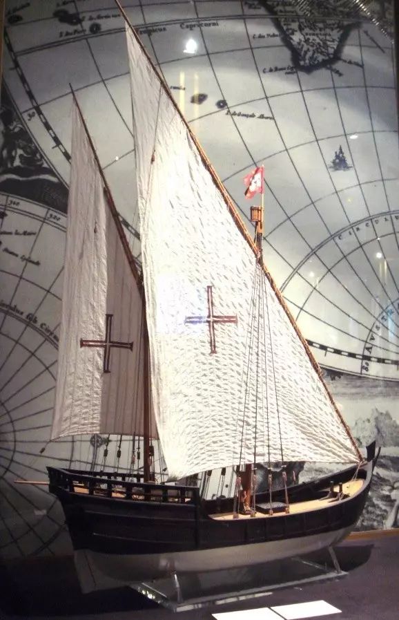 ►葡萄牙制造的卡拉维尔帆船(模型)和克拉克帆船图像(根据1565年绘制的一幅海图) 图片来源:维基