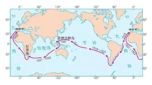 ►麦哲伦环球航行路线图 图片来源:百度图片